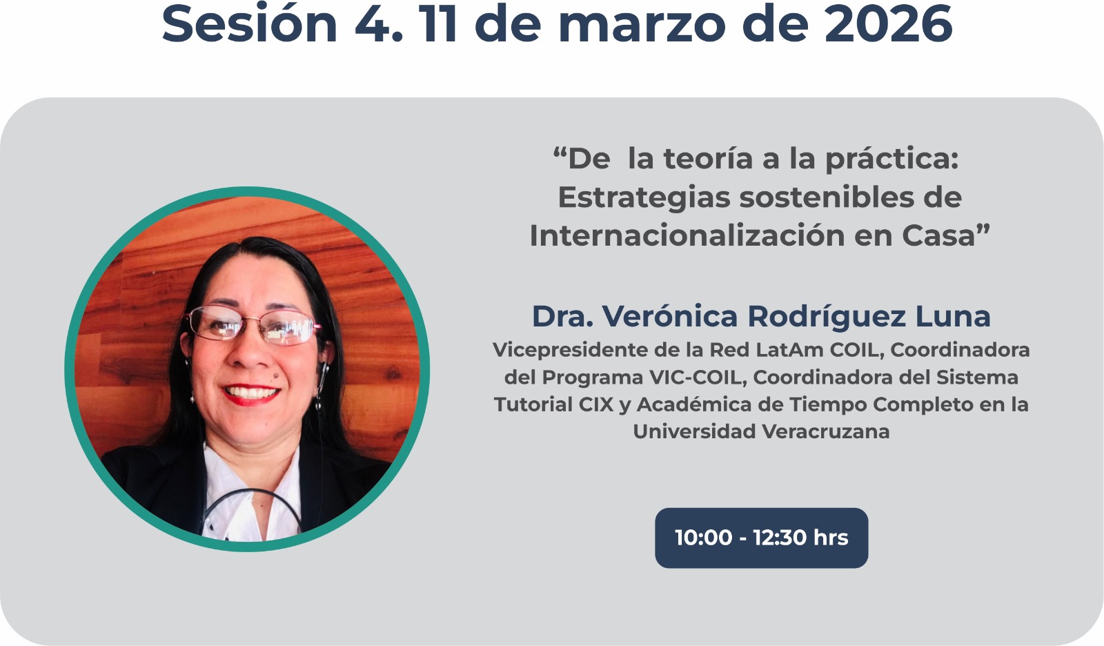 Objetivo: Brindar a la comunidad académica y de gestión universitaria un espacio de reflexión y aprendizaje a través de un ciclo de webinarios con la participación de expertos internacionales, orientado a fortalecer las capacidades institucionales en materia de internacionalización en casa, mediante la incorporación de buenas prácticas, estrategias innovadoras y experiencias exitosas que contribuyan a enriquecer la formación de estudiantes y docentes en un entorno global desde el propio ámbito universitario.